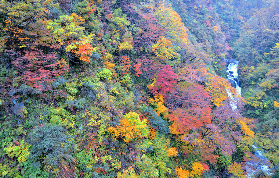 磐梯朝日国立公園に指定されている渓谷である。新潟を代表した秋の情景描写カット。